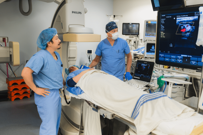 The HHS procedure was performed by neurointerventionalist and neurologist Dr. Brian Van Adel and neurosurgeon Dr. Bill Wang. A neurointerventionalist fixes blood vessel problems through small, precise procedures inside the body rather than open surgery.