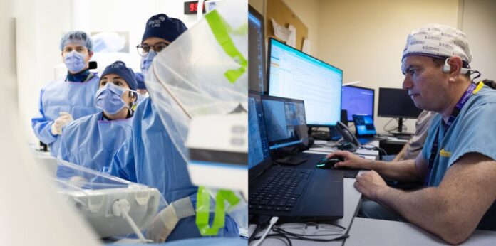 Dr. Vitor Mendes Pereira, a neurosurgeon who specializes in neurosurgical minimally invasive procedures, performed a diagnostic angiogram in two patients located at St. Michael’s while he remained at St. Joseph’s. Both hospitals are part of the Unity Health Toronto hospital network.